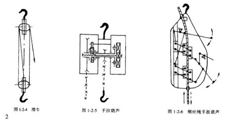 繞過定滑輪和動滑輪的承載構件有鋼絲繩、環鏈等。輪滑組中,輪滑的個數也各不相等。
