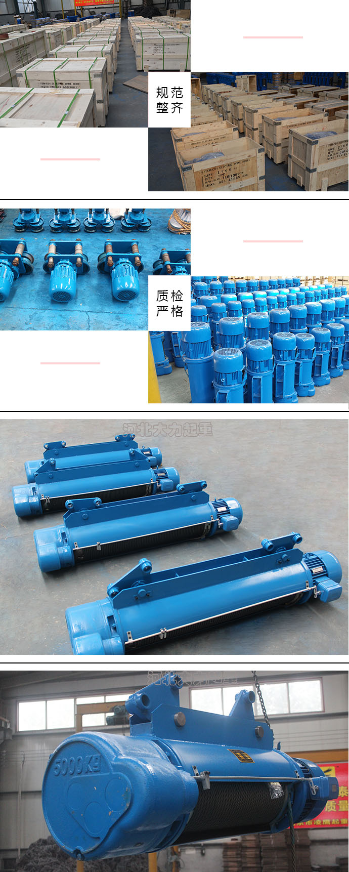 我公司也可以根據客戶提供得樣品和設計圖紙生產各種非標鋼絲繩電動葫蘆產品,以滿足客戶不同得需求。我們奉行科技是第一生產力的原則并且嚴格貫徹質量標準,從采購原材料到貨物運輸整個流程都有嚴格控制,確保產品的優質精良。24小時熱線電話:15803222055