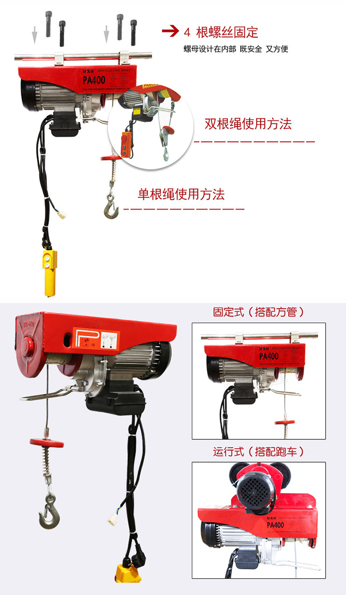 微型電動葫蘆又叫民用電動葫蘆,是我公司按國家標準生產,設計合理,用料考究,結構先進,外型美觀,體積小,重量輕,機件強度高,使用安全,精細輕巧,性能更穩,經久耐用。